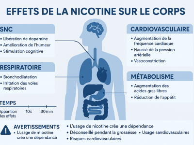 L’effet nicotine sur le corps humain est un processus neurobiochimique complexe qui influence l’organisme en quelques secondes. Cette substance psychoactive stimule les récepteurs nicotiniques du système nerveux central, déclenchant une cascade...13.10.2025