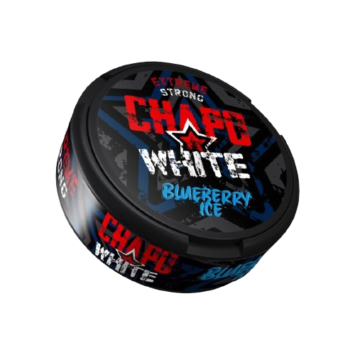 CHAPO WHITE BLUEBERRY ICE STRONG designed for discreet use, the slim-format portions fit comfortably without leaving any stains on teeth. The product contains 20 portions per can, with each pouch weighing in at 24g and delivering 16.5 mg/g of nicotine.