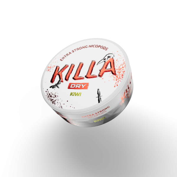 Killa Dry Kiwi 🥝 Experience an exotic whirlwind with Killa Dry Kiwi nicotine pods! This white pouch bursts with the vibrant flavor of kiwi, enchanting all your senses.